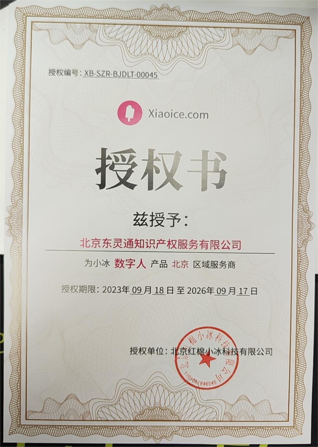 小冰數(shù)字人授權(quán)書